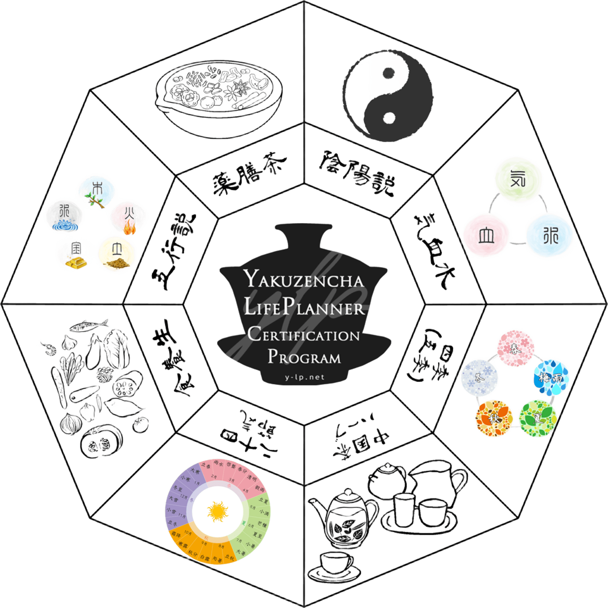 気血水・陰陽説・五行説・四季(五季)・二十四節気・食養生法などを組み合わせ、自身の体調に合わせた複合的な薬膳茶を作る知識・手法(薬膳茶ライフプランナーメソッド)を学び、最終的に気血水、陰陽説、五行説、季節(五季・二十四節気)、養生などの考え方に基づいた自身の体質や体調に合わせた日々の生活での活かし方や取り入れ方を身に付けていただき、健康的な生活を送っていただくことが目標です。